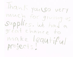 Thank you, thank you, thank you! Your contribution to my art room is so appreciated. As an art teacher most of our materials are consumables and need to be constantly replenished leaving no room to purchase any enhancements. It is so important to have quality supplies and equipment to support quality art education.