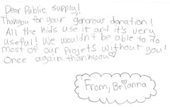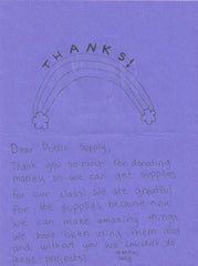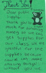 Thank you so much for your generous donations, the students are really excited for this new opportunity at our school! The students are really enjoying having the proper tools to make their art projects and are excited about learning the proper ways of using them; and are inventing some new ways as well!