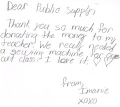 I want to sincerely thank you for your contribution to our classroom project. This donation came at just the right time. We are currently painting our sculptures and are running out of paint. The next project that I had planned is the Paint Nite project, but since we didn't have canvases or acrylic papers I was planning to have them paint on watercolor paper. Now that you kindly purchased the paint and canvases, we can begin our Paint Nite project as originally planned. I cannot wait to be able to send you pictures of our finished works of art. Thanks again. It's the kindness of people like you that keeps the arts going strong.-Mrs. Ortiz