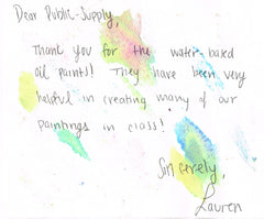 Wow! Thank you so much for supporting my painting students. We have had great success this year with water-based oil paints. Students are blending better than ever, and the colors they create are so rich and brilliant. Whenever we display work in the hallway, students get rave reviews. My students have personally thanked me for providing them with high-quality art supplies. I give the credit to you, our sponsors, for affording us this unique opportunity. Thanks for making my program so successful.With gratitude,